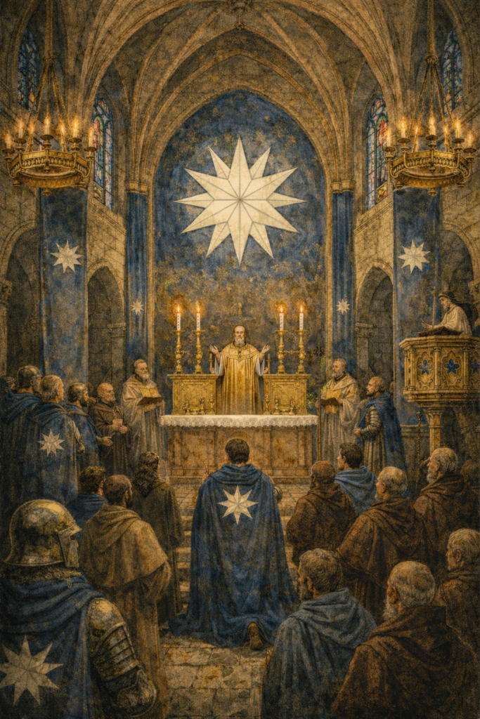 When an Adept is received, he is given no cloak, nor spurs, nor title. He is given only the first burden: a steel medallion, wrought in the shape of the white twelve-sided star, plain and unadorned. It is hung upon his neck that he might feel its weight both waking and asleep, and remember that the Order is not honor but obligation. From that day, he is accounted as belonging to the brotherhood—yet not fully of it, as a blade is not yet a sword until it is tempered.